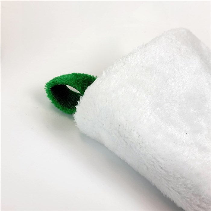 • Stocking is made of a soft, cotton/polyester plush material with full white cuff.